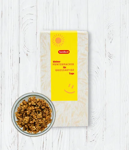 Als Schweizer Müesli- & Bio-Pionierin lebt familia seit 1959 für deinen Genuss und das Wohlbefinden von Mensch und Natur. Mit viel Handarbeit und Hingabe geben wir dir schonend und naturbelassen die wertvollen Nährstoffe weiter, die dir Kraft und Energie schenken. Für dich und die nächste Generation. Unterstütze auch du unseren Weg.