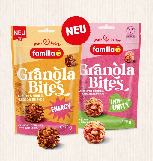 Entdecke die smarte Art zu snacken mit den neuen Granola Bites von familia