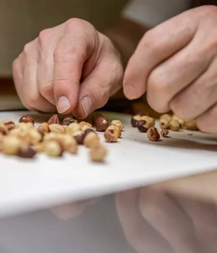 Unsere Haselnüsse und Mandeln rösten wir nach traditionellem Verfahren selbst, um ihren vollen Geschmack zu entfalten. Sie sind reich an wertvollen ein- und mehrfach ungesättigten Fettsäuren, die beim Rösten und anschliessenden Verlesen von Hand erhalten bleiben und in unseren Müeslimischungen perfekt zur Geltung kommen.