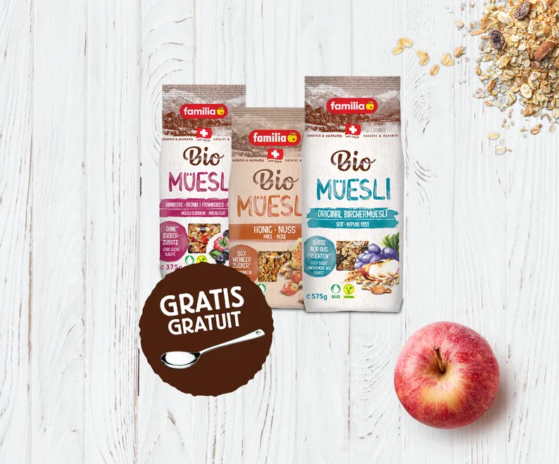 Gratis zu dieser Box schenkt dir bio-familia einen familia Löffel im Wert von CHF 4.-.