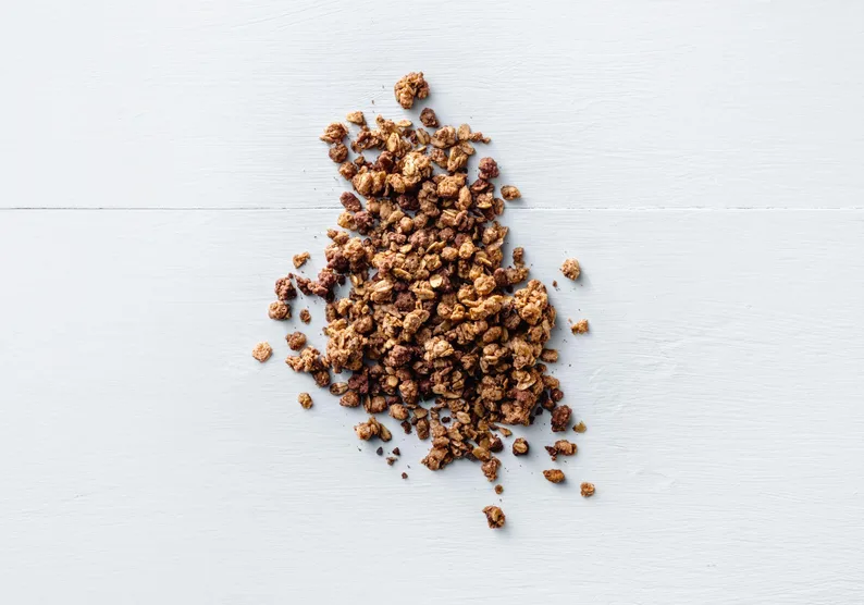 Vollkorn-Haferflocken, Schokolade (Zucker, Kakaobutter, Kakaomasse, Vollmilchpulver, Kakaopulver, Molkenpulver, natürliches Vanille-Aroma), Getreide-Crispies (Mais, Reis, Zucker, Weizenmehl, Gerstenmalz ,  fettarmes Kakaopulver, Meersalz), Zucker, Weizenmehl, Sonnenblumenöl, Kokosflocken, Oligofructose, Honig, fettarmes Kakaopulver, Weizenkeime, Dextrose, Haselnüsse geröstet. Getreide: 54%, davon Vollkorn 65%, Schokolade: 13.5%.