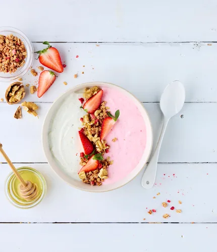 Liebst du Beeren-Müesli auch so sehr? Findest aber kaum etwas ohne viel Zucker oder künstliche Süssungsmittel? Dann liegst du hier goldrichtig! Dieses zuckerarme Müesli liefert pflanzliche Proteine und erfrischende Erbeerstückli. Erdbeeren enthalten sogar mehr Vitamin C als Zitrusfrüchte und sind reich an Folsäure, Mineralstoffen und sekundären Pflanzenstoffen. Eine ausgewogene Ernährung und gesunde Lebensweise sind wichtig für das Wohlbefinden.