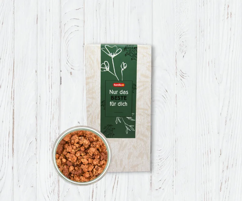 Du möchtest kein 0815 Geschenk? Genuss schenken und deine Message mitgeben? Wähle eines unserer feinen Knuspermüesli mit einer Etikette mit einem frechen Spruch oder einer Botschaft von Herzen aus. Sei dies als Dankeschön für eine Einladung, als neckische Botschaft im Alltag oder ganz einfach zum Zeigen, dass du deine Liebsten magst.